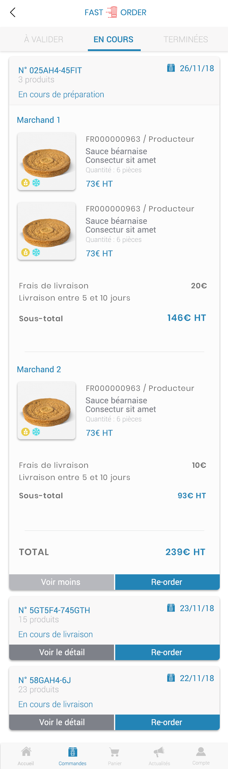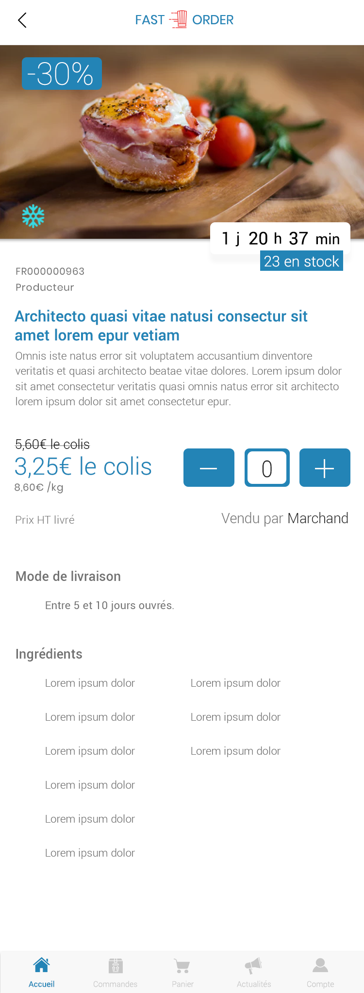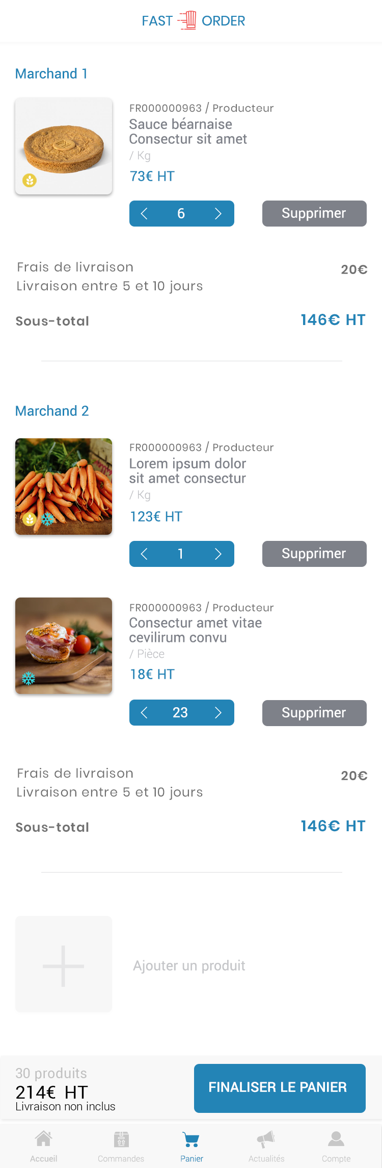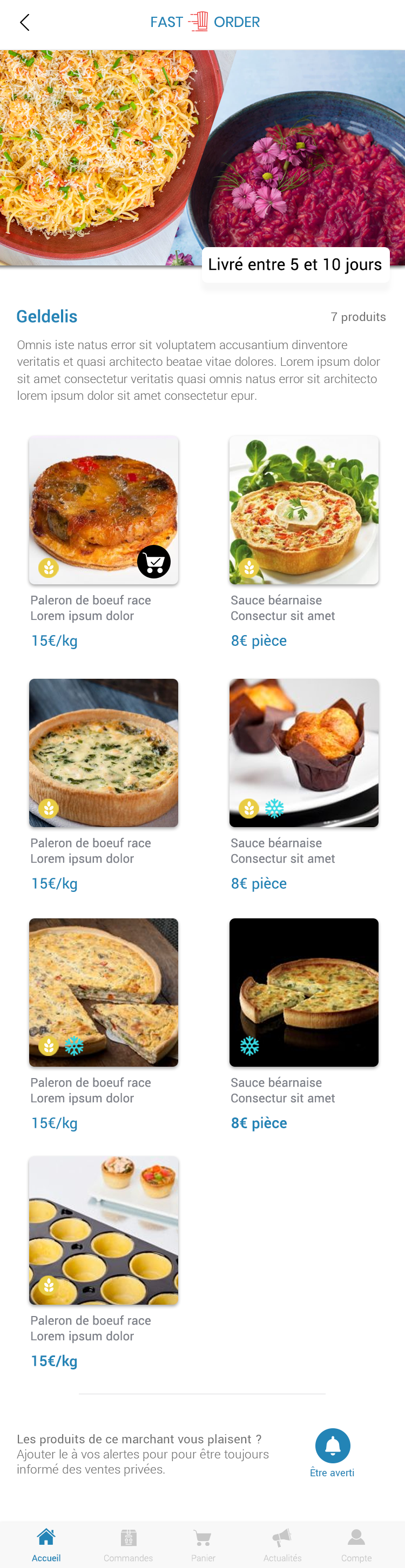 Intégration des vues de l'application mobile Gourming, première market place alimentaire Française permettant d'acheter des produits de producteurs Français.