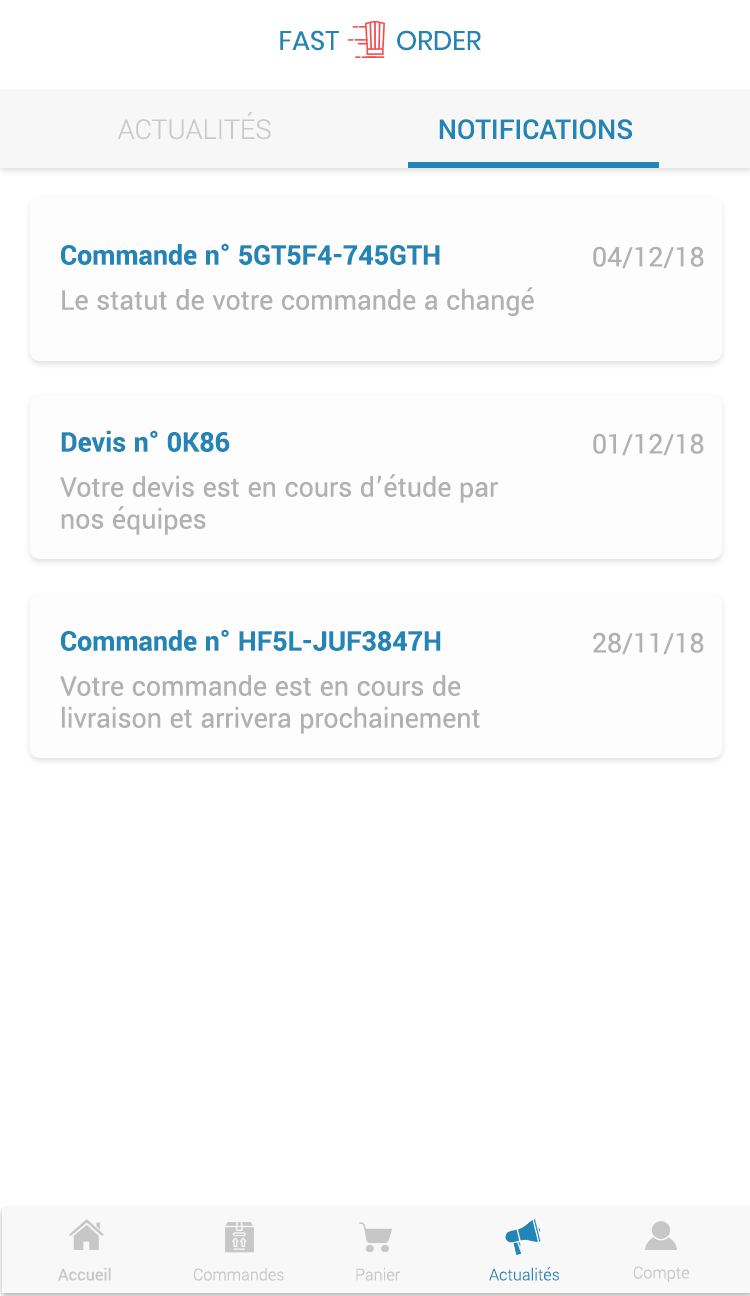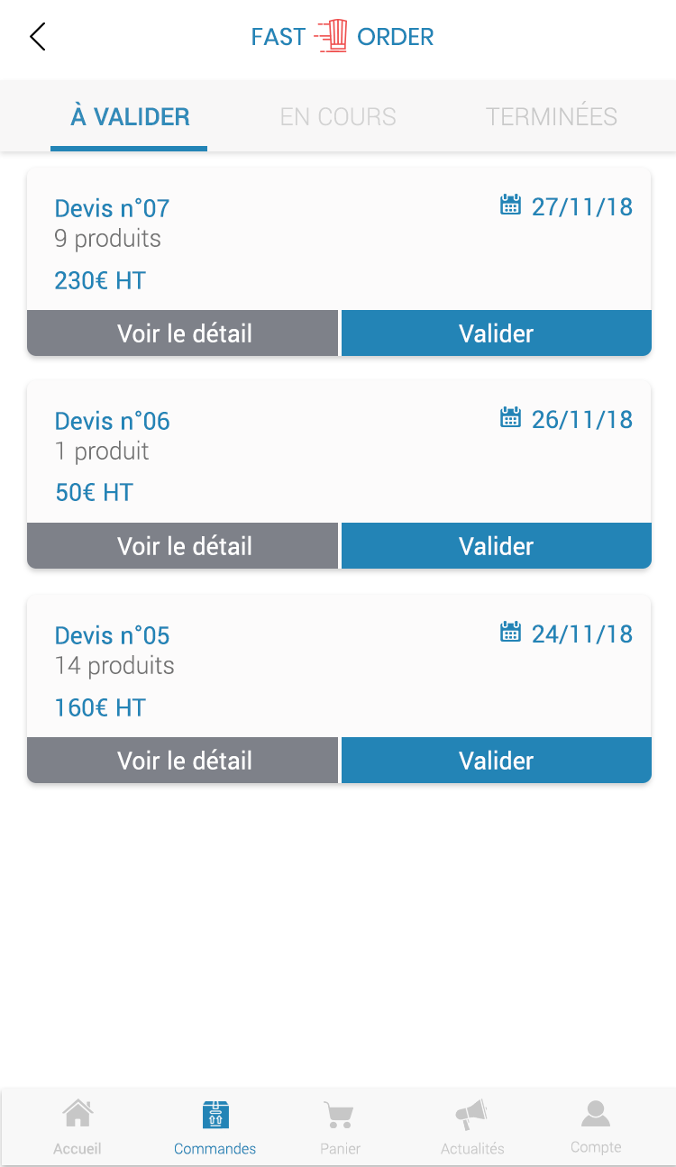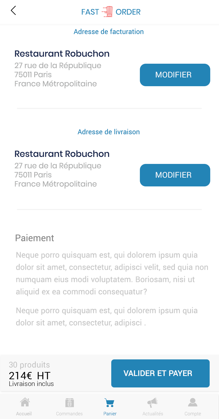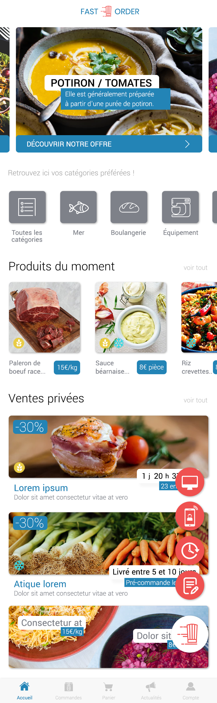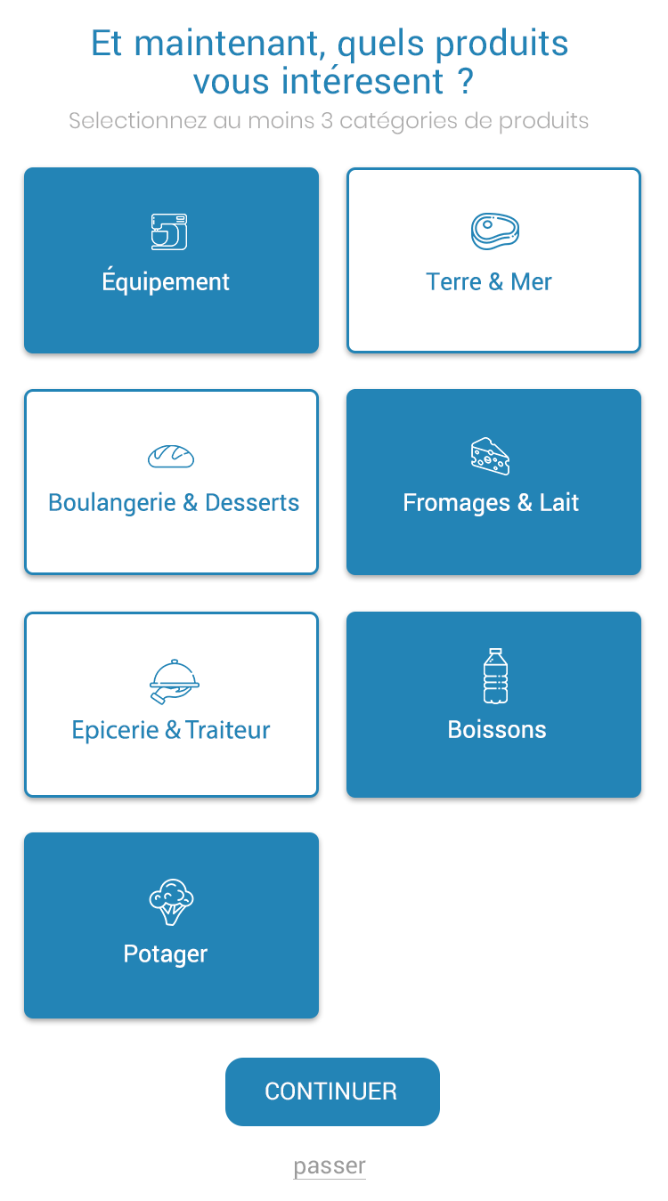 Intégration des vues de l'application mobile Gourming, première market place alimentaire Française permettant d'acheter des produits de producteurs Français.